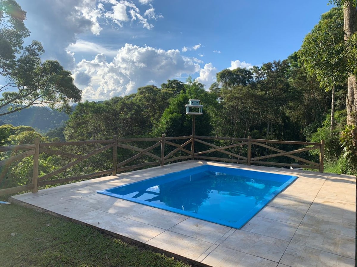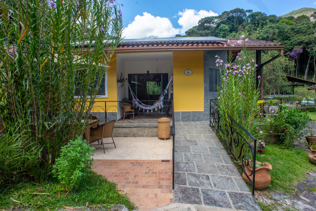 Casa de Madeira integrada a natureza. Com uma linda rede suspensa direto do deck da varanda e uma banheira de hidromassagem para relaxar. Refúgio para quem deseja paz, tranquilidade e privacidade. Acordar com o canto dos pássaros e sentir o ar puro da Serra. Sem nenhuma interferência da cidade grande, você estará em Conexão total com a natureza.