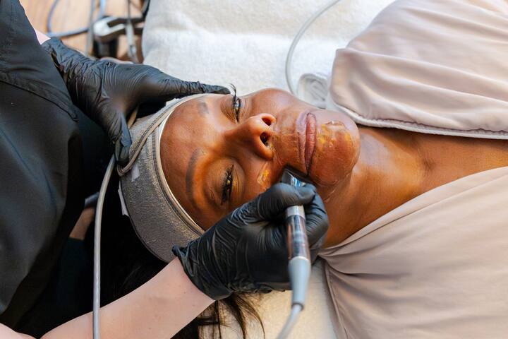 Stimulate native collagen and tone face muscles with this facial treatment, which target pores, fine lines, wrinkles, hyperpigmentation, and sun damage.