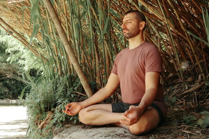 Klase sa Panlabas na Yoga, na nakatuon sa pisikal na kasanayan, paghinga at pagmumuni - muni.