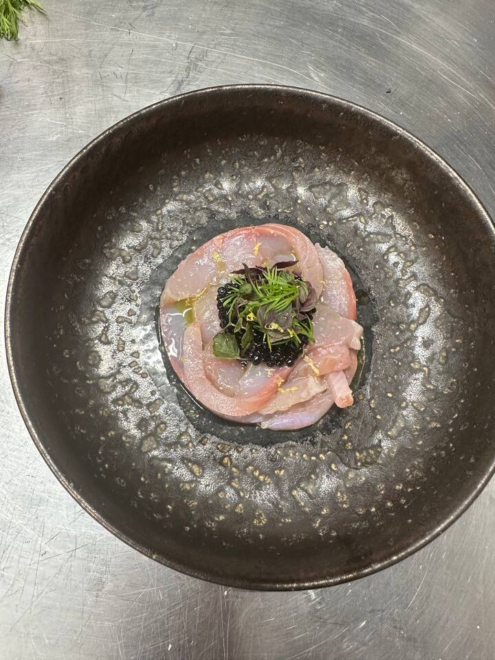 - raw scampi na may chickpea stracchino, mango iceberg at caviar