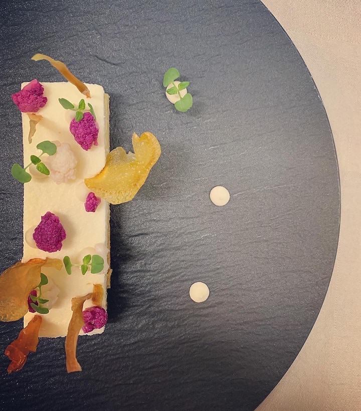 Nag - aalok ang menu na ito ng pagsasama - sama ng mga klasikong at modernong lutuin, na may mga pagkaing inihanda sa bahay mula sa mga sariwang sangkap at pinong pamamaraan sa pagbibihis.