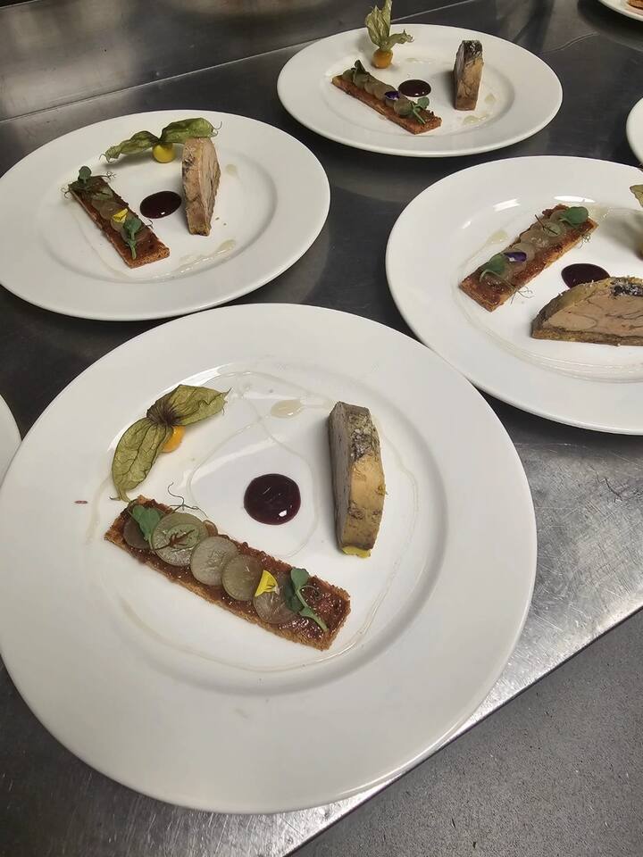 Tuklasin ang isang kumpletong sorpresa na menu na may empanadas bilang pampagana, tataki ng marinated na bluefin tuna bilang pangunahing kurso, na sinusundan ng isang gigotelle ng guinea fowl na may wild mushrooms, bagong patatas at berdeng asparagus, at tapusin sa isang yuzu lemon tartlet at lemon cream.