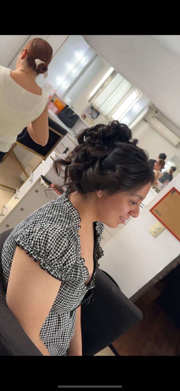Maglagay ng alon‑alon o tuwid na ayos ng buhok. Kasama sa session ang paghahanda ng balat, express eyebrow design, paggamit ng mga tradisyonal na cosmetic product para sa mukha, at paglalagay ng strip eyelashes.