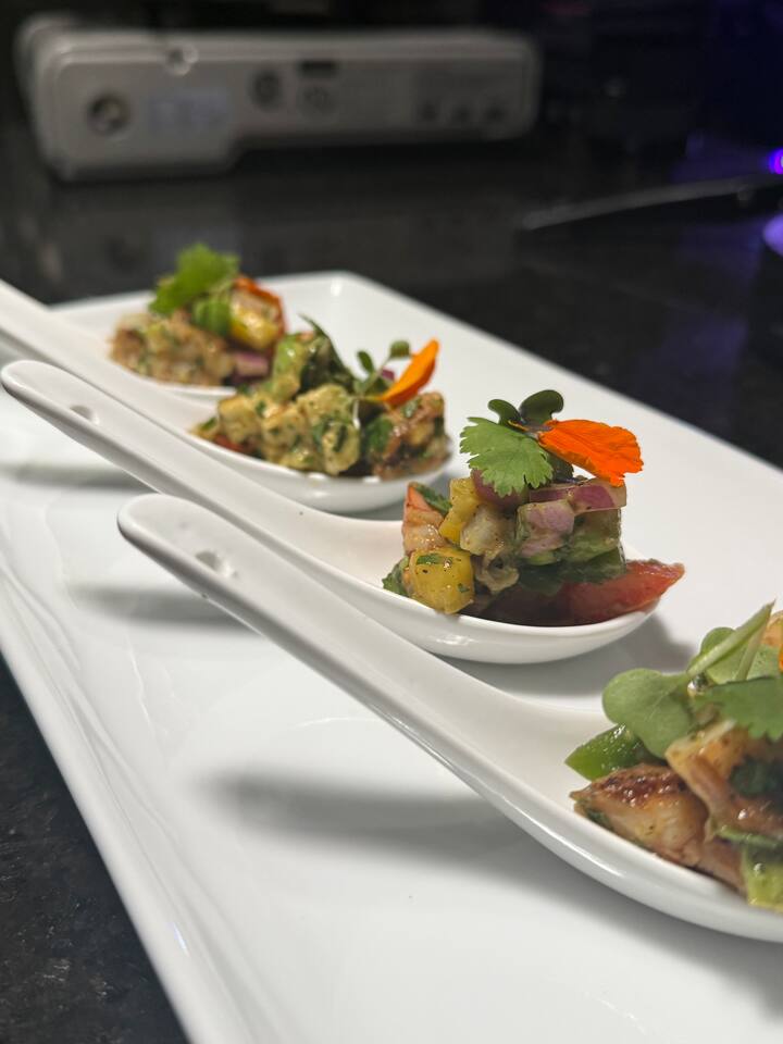 Mga kutsara ng ceviche na hipon