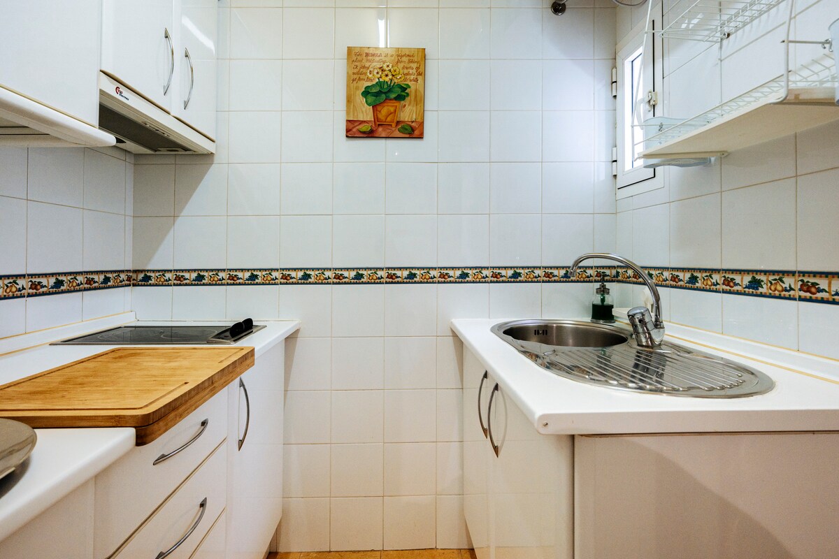 Magandang apartment sa ground floor para sa tatlong tao. Ilang metro mula sa Los Arcos Mall. May magandang lokasyon at naa - access na mga serbisyo sa transportasyon: metro, bus, taxi, daanan ng bisikleta. Dalawang silid - tulugan na may direktang access sa magandang patyo.