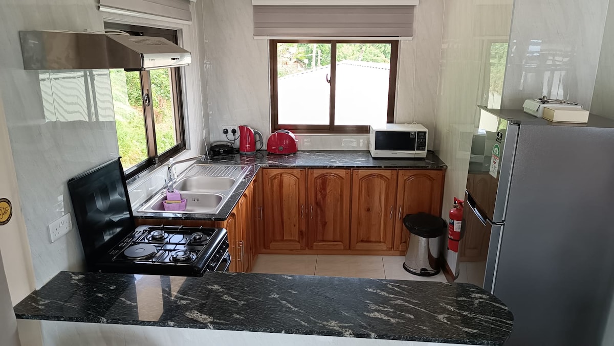 Pambihira ang isang silid - tulugan na tuluyan na ito. Puwedeng gumising ang mga bisita nang may nakakamanghang tanawin na magpapalakas sa anumang pagod na pag - iisip. Ang living space ay maluwag at isang magandang lugar upang makapagpahinga sa privacy. 180 Degrees Self Catering ay pinangalanan para sa pagkakaroon ng isang 180 degree view ng Central East Coast ng Mahe, na kung saan ay isang kamangha - manghang tanawin. Ang aming lokasyon ay may malapit na access sa mga tindahan, kasama ang bayan at ang paliparan ilang minuto lamang ang layo sa pamamagitan ng kotse.