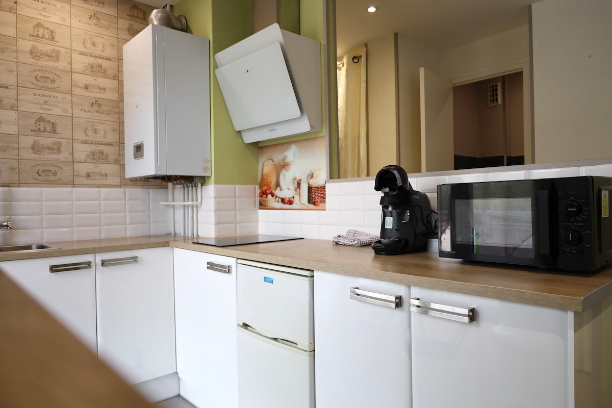 2 kuwarto na apartment, 41 m2 sa isang tirahan mula 2009, sa 3rd floor na may elevator + malaking pribadong paradahan sa ilalim ng lupa. Nakatira ako sa apartment na ito at inuupahan ko ito kapag bumibiyahe ako. isa akong tagahanga ng dalawang antigong gulong, isang bisikleta at isang moped na dekorasyon sa apartment ☺️ Talagang maginhawa para sa lokasyon at configuration nito. Mararangyang tirahan. Tahimik at malapit ka sa lahat. Ikaw mismo ang may apartment na may apartment.