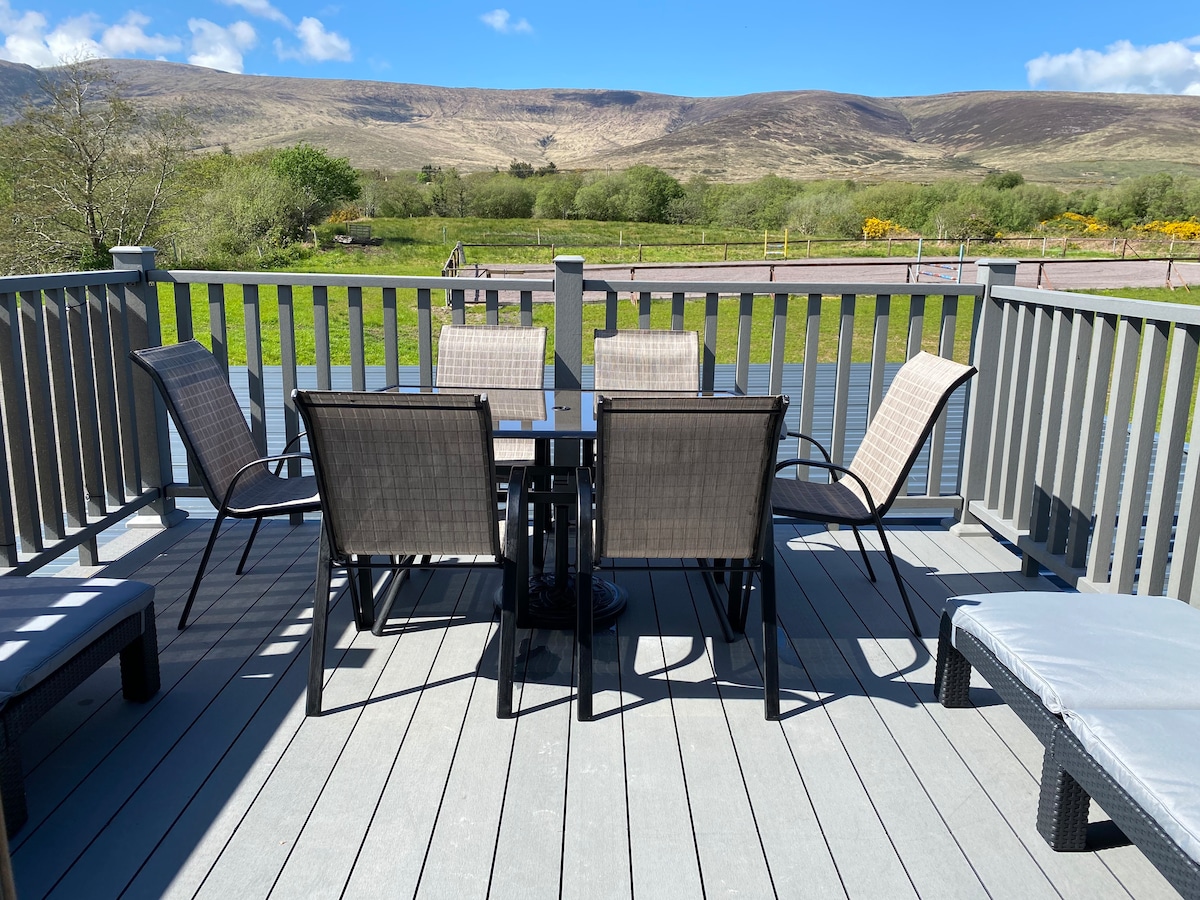 Cosy Chalet with one large family bedroom upstairs (double and single beds). Cot /high chair and stair gate available. Downstairs has a spacious kitchen and living room with a wood burning stove, TV and WIFI, also Toilet/shower room. Its a separate unit behind our home with plenty privacy. Guests have a private outdoor seating area with access to big lawn.