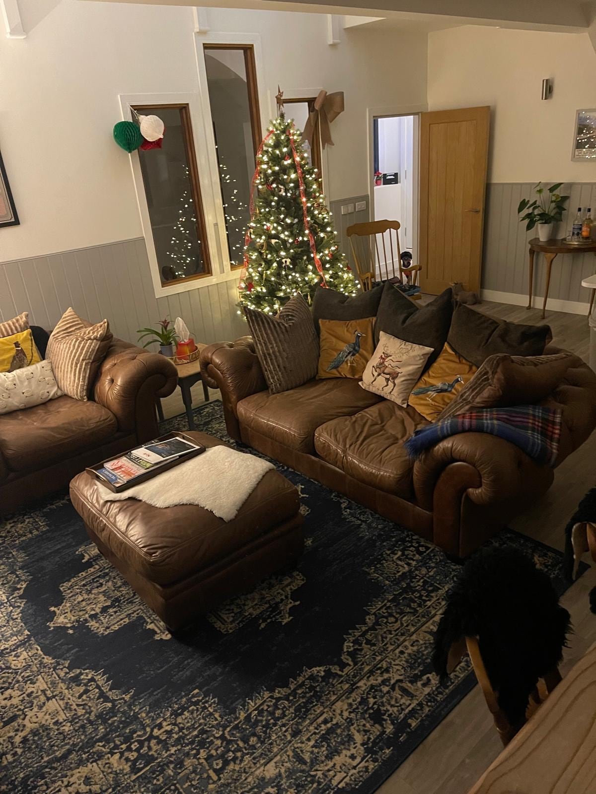 A beautifully converted chapel. Bright, spacious and lovely views from gallery, also a peaceful workspace. Wi-Fi. Pineapple Room with kingsize bed. Jungle Room twin beds or king. Lovely bathroom with shower over bath. Spacious family room with fully equipped kitchen, dining and lounge. Downstairs cloakroom. Designated onsite parking for one car. Enclosed garden ( access across car park through gate signed The Old Chapel Garden). Two housetrained dogs welcome, MUST book. No puppies.