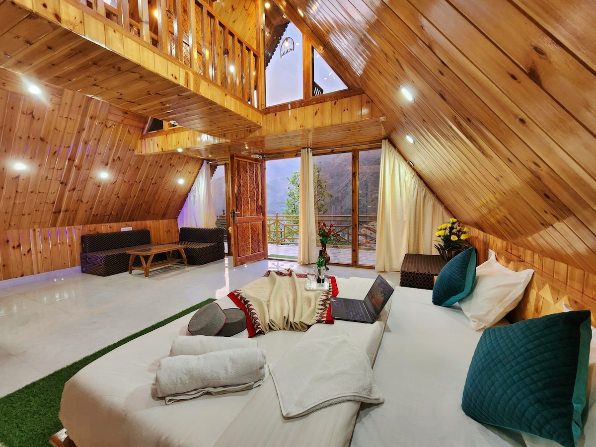 Tumakas sa tahimik na Sainj Valley at magpahinga sa aming kaakit - akit na A Frame Duplex Cottage, na nasa gitna ng maringal na Sainj Valley. - Maluwang na master bedroom na may nakakonektang banyo na may mga modernong amenidad. - Pangalawang silid - tulugan na nasa itaas, na perpekto para sa mga pamilya o kaibigan. - Isang lugar na may upuan sa balkonahe, kung saan puwede kang mamasyal sa mga nakamamanghang tanawin ng Himalayas. Matatagpuan ang aming cottage sa mapayapang lokasyon, na may: - Ang kahanga - hangang hanay ng Himalaya at tuklasin ang lokal na kultura ng kalapit na nayon.