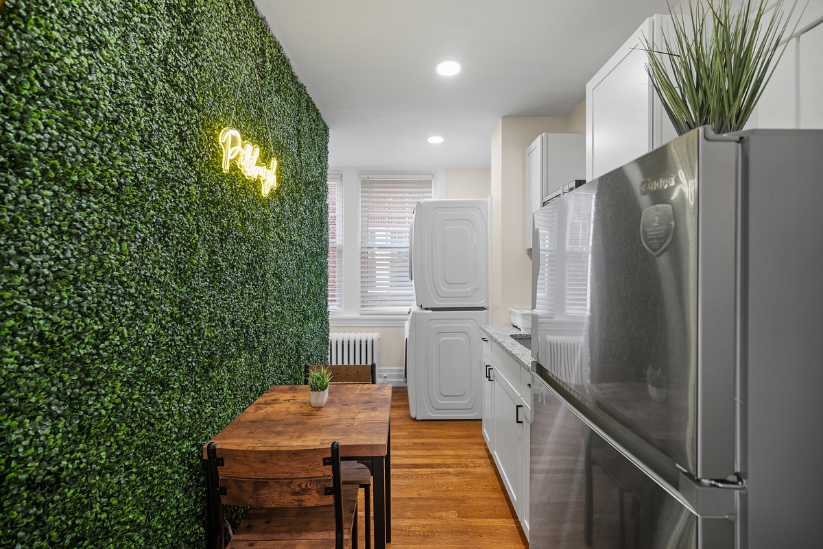 OFF STREET PARKING SPOT! Brand new KING Suite on a quiet tree lined street in Bloomfield! 1 block to West Penn hospital, and a short walk to UPMC! On site parking makes the short drive to Shadyside, CMU & Pitt a breeze! The building was gutted and remodeled, everything is brand new! Free laundry in the unit! Private patio! Fully stocked for long and short term stays! Dozens of restaurants, shops, coffee shops, and fitness studios close by. Make your reservation today!