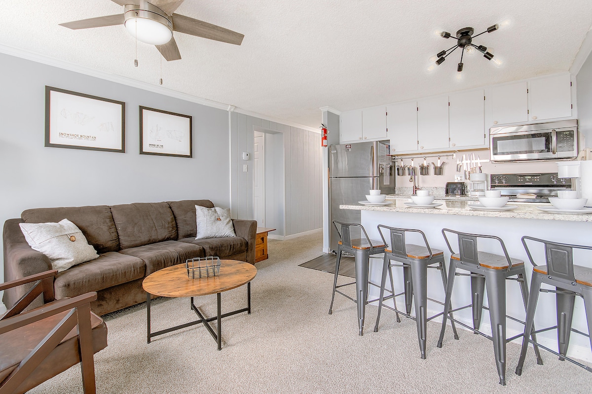 Ang aming condo ay magiging retreat mo kapag bumisita ka sa Snowshoe. Mag - ski out at madaling ma - access ang mga dalisdis at ang pag - angat ng Powderidge. Maglakad o magbisikleta sa mga daanan. Mamahinga nang payapa at tahimik, na may mga tanawin ng kakahuyan at kabundukan habang nararanasan ang lahat ng amenidad na inaalok ng resort. Isang maigsing lakad lang ang layo mula sa pangunahing nayon para magkaroon ka ng pinakamagagandang bahagi ng parehong mundo. Tumuloy sa maliliit na grupo, mag - asawa at pamilya. Pumarada sa harap. Libre ang usok at alagang hayop. Mabilis na WiFi. Ski Out.