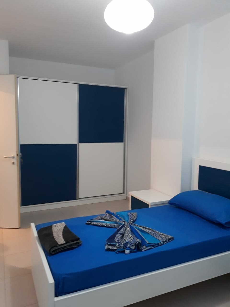 Mga Tampok ng 🏡 Apartment: Silid - kainan: Komportableng silid - kainan. Silid - tulugan: Hiwalay at komportableng silid - tulugan na may double bed at bunk bed. Banyo: Nilagyan ng shower. Living Area: Kasama sa apartment ang sofa bed . Kusina: Kusina na may kumpletong kagamitan na may kalan, refrigerator, at lahat ng kinakailangang kagamitan sa kusina . Washing Machine Libangan: Mag - enjoy sa flat - screen TV . Air Conditioning: Ganap na naka - air condition ang apartment.