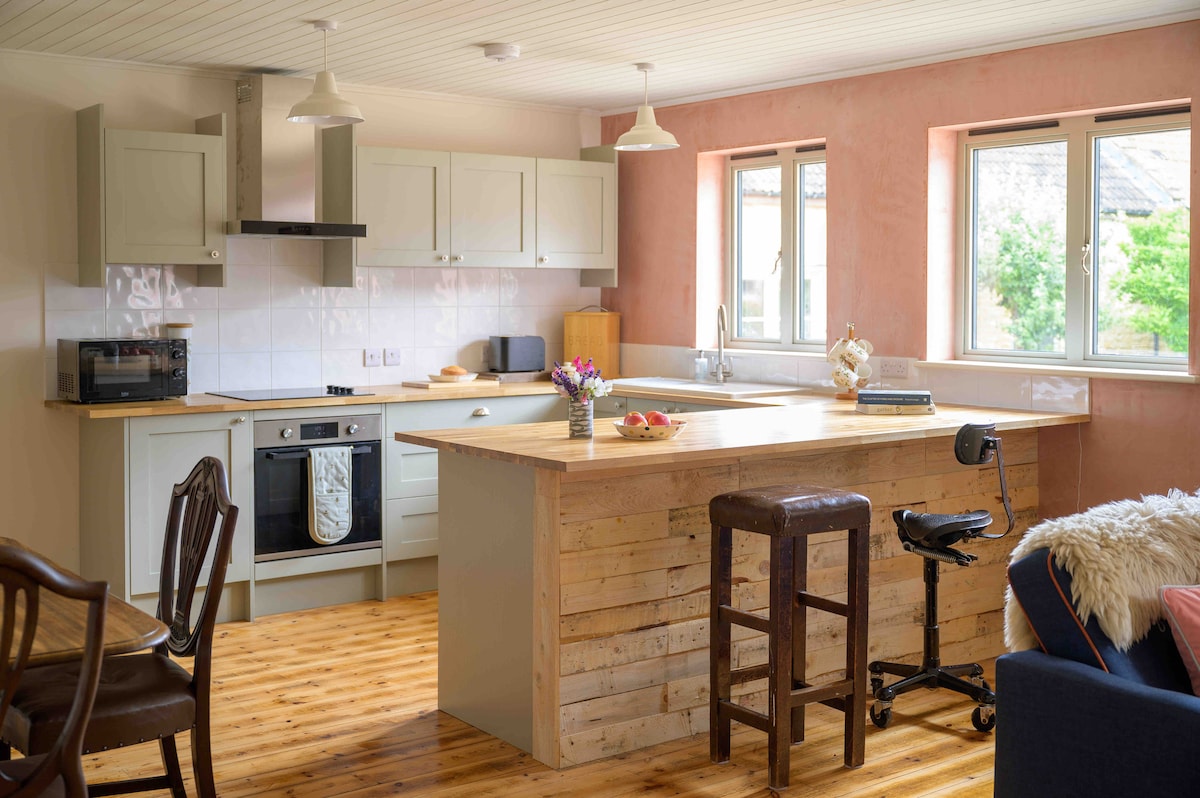 Makikita sa bakuran ng aming thatched farmhouse ngunit may ganap na privacy at kapayapaan. Inayos sa mataas na pamantayan, ang cottage ay maluwag, maaraw at may hot tub para sa iyong pribadong paggamit! Ang perpektong get away, na may magagandang tanawin sa kanayunan at kumpletong katahimikan ngunit ang mga lokal na nayon at bayan ay isang bato lamang. Malaking kusinang kumpleto sa kagamitan na may kainan, 2 banyo, maluwag na lounge at dalawang magagandang silid - tulugan, lahat ay pinalamutian nang maayos. 5 minutong lakad ang award winning na gastropub. Isang magandang bakasyunan sa kanayunan.