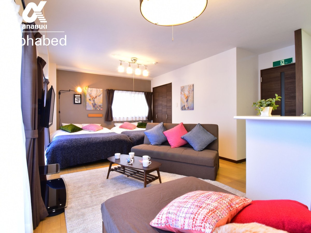 Large Japanese apartment right next to the PeacePark. 1 Bedroom apartment with 2 queen size bed and 3 double sofa bed. Complete facility and hotel amenities are provided. Large space can provide up to 10 people comfortably. Towels are provided. It has elevator and smart lock feature for guests added safety and security. Room wifi, TV, Washing Machine are all provided. With toilet and bath. Please note: Cleaning is done one time only after you check out.