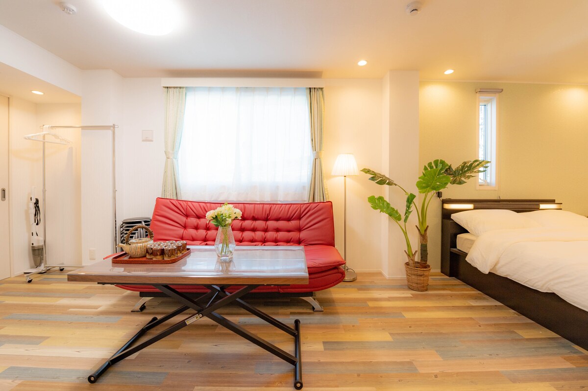Maginhawa para sa buong pamilya na pumunta kahit saan sa sentral na lugar na ito. Dalawang king‑size na higaan sa kuwarto, na angkop para sa pamilya at mga kaibigan Komportable ang sahig, at pribado ang tuluyan.Angkop para sa hanggang 5 tao. May induction stove, kaldero, at pinggan sa kusina. Kung gusto mong kumain ng lutong‑bahay, madali lang magluto ng simpleng pagkaing Japanese. Konektado ang bar sa sala at kainan, kaya maganda para sa kape sa umaga o hapunan. May hiwalay na banyo ang lababo kaya puwede kang mamalagi kasama ng ilang tao nang ayon sa kagustuhan mo Ang pagbibigay ng Bluetooth stereo, pakikinig sa musika at pagligo sa malamig na tubig sa gabi sa Japan ang pinakamakapagpapahingang sandali ng biyahe. May projector sa kuwarto, kaya madali mong makokonekta ang karaniwang ginagamit na digital streaming platform Washing machine, air purifier, plantsa, at malawak na aparador, kung kailangan mo, handa na kami Tamang‑tama ang tuluyan para sa isang tao na tahimik na magtrabaho sa bar o mamalagi kasama ang mga kaibigan o kapamilya sa loob ng ilang araw Mag‑relax at mag‑comfort.