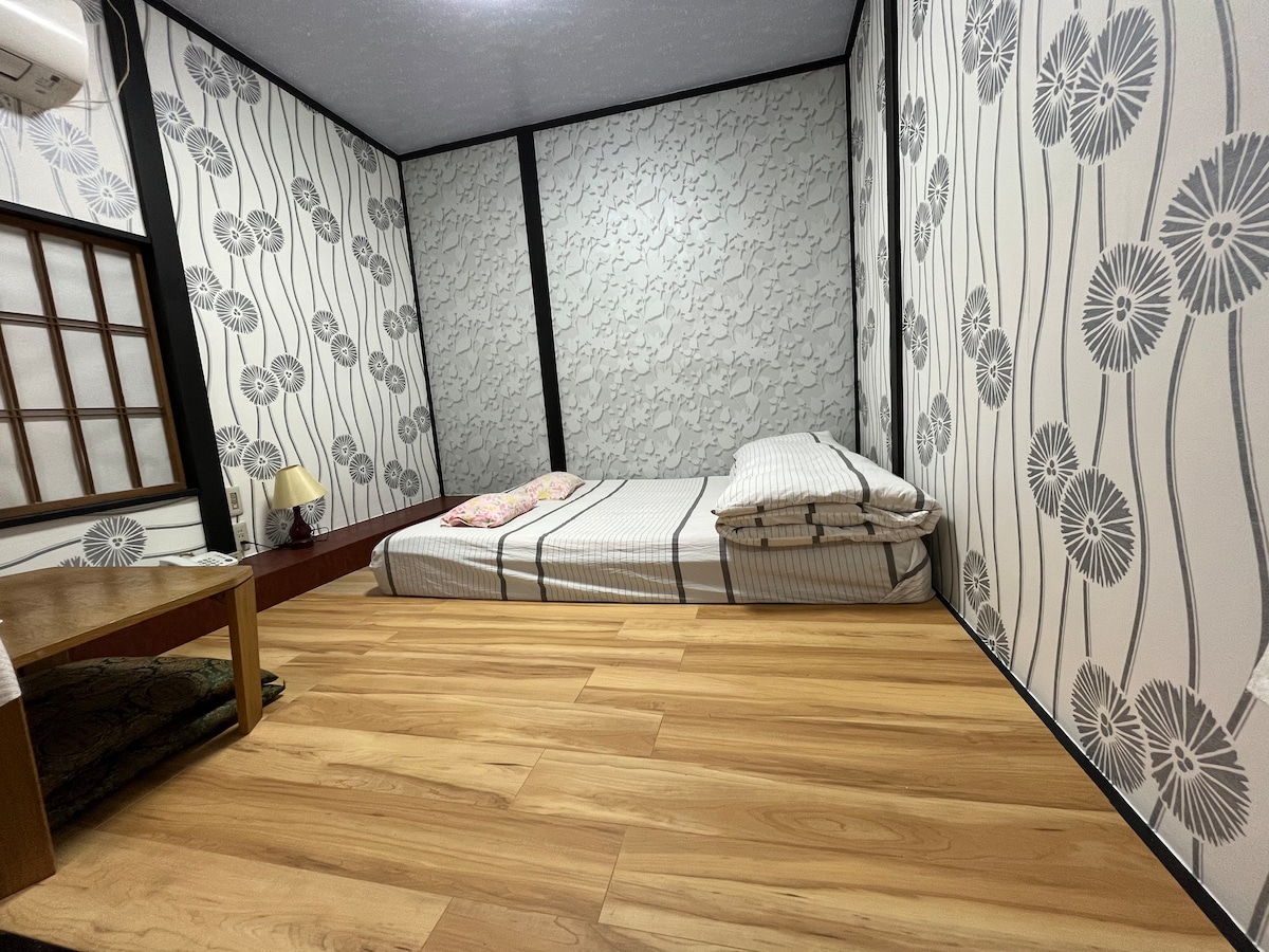 3 -5 minutong lakad papunta sa istasyon ng JR Uguishudani Apartment para sa inyong sarili. May isang listing sa isang palapag.( panatilihing pribado) Maliit ang kuwartong ito (13m2)- para sa 1 o2 may sapat na gulang. ※1 semidouble bed.(120×195cm)Soft - type na kutson Medyo makitid ito para sa dalawang malalaking tao.- ・1 Banyo na may 1 palikuran. Kumpletong ・kagamitan sa kusina ・Air conditioner (cool/hot) Wi - Fi, Iron, Hair dryer, Washing machine, tuwalya, atbp. ※1st floor/Hindi ko inirerekomenda ang bisitang sensitibo sa ingay. ※Ang pasukan ay isang sliding glass door sa kalye