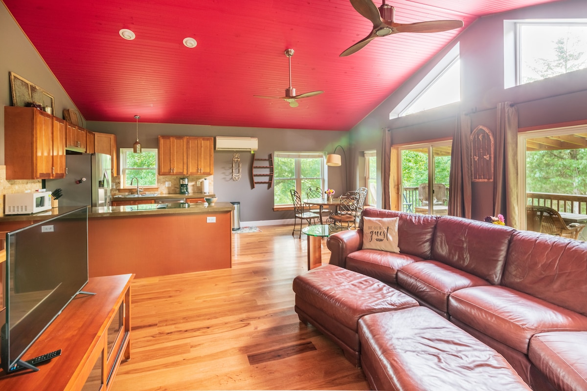 Bumaba sa iyong maluwag na front porch para mamasyal sa mga ubasan ng Lovingston Winery! Dalhin ang iyong mga kaibigan at magpalipas ng katapusan ng linggo sa isang maaliwalas na cabin na may mga modernong amenidad sa sikat na rehiyon ng Monticello wine. Kasama sa 64 acre property na ito ang mga puno ng digmaan, tanawin ng bundok, at lawa na may mga otter! Hinihikayat ka naming tuklasin ang property at mag - enjoy sa isang baso ng Lovingston Wine. May pagkakataon na maaari kang batiin ng isang maliit na kabayo o dalawa! 6 na mahimbing na natutulog, higaan para sa 7, dagdag na singil.