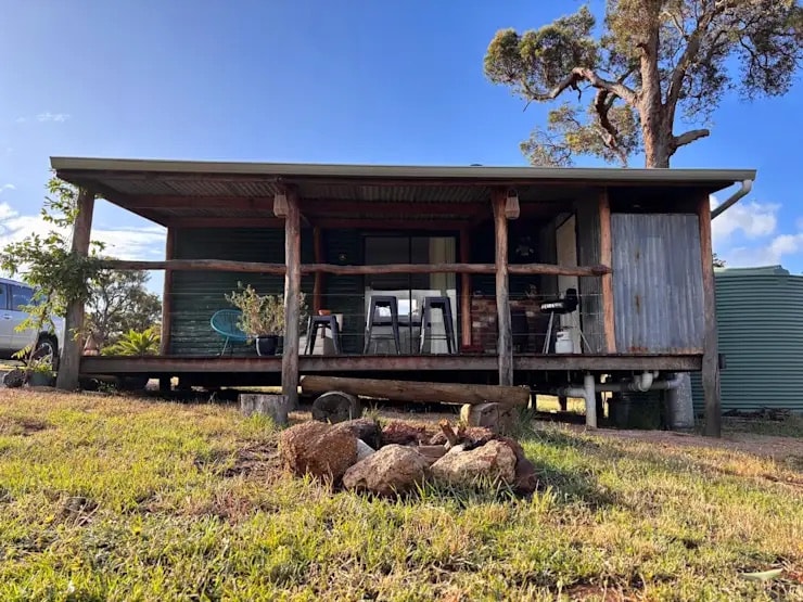 Maganda ang lokasyon ng Red Robin cabin kung saan matatanaw ang sapa, mga talon, at lupang sakahan. May queen‑size na higaan, pull‑out na kutson para sa ikatlong bisita, munting kusina, simpleng banyo, at shower. Mag-enjoy sa malaking veranda, lounge, fire heating, at fire pit. Gumagamit ng tubig-ulan at solar power ang off-grid na cabin na ito—simple, komportable, at payapa. Magrelaks nang may inumin at magpahinga sa buhay sa lungsod. Mga 12V solar outlet lang; magdala ng battery pack para sa mga telepono. Magandang base para tuklasin ang timog‑kanluran