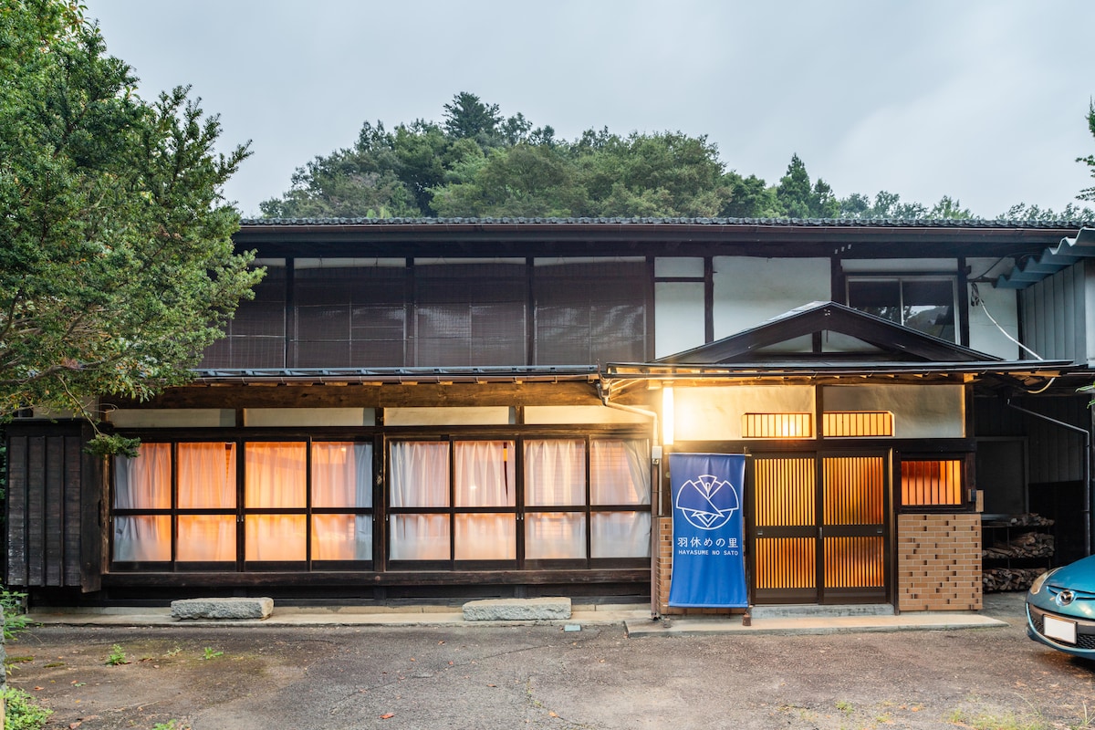 Isang 150 taong gulang na bahay na itinayo para makapagpahinga gamit ang bonfire, BBQ, at waterfall sauna, "Hayasumenosato"