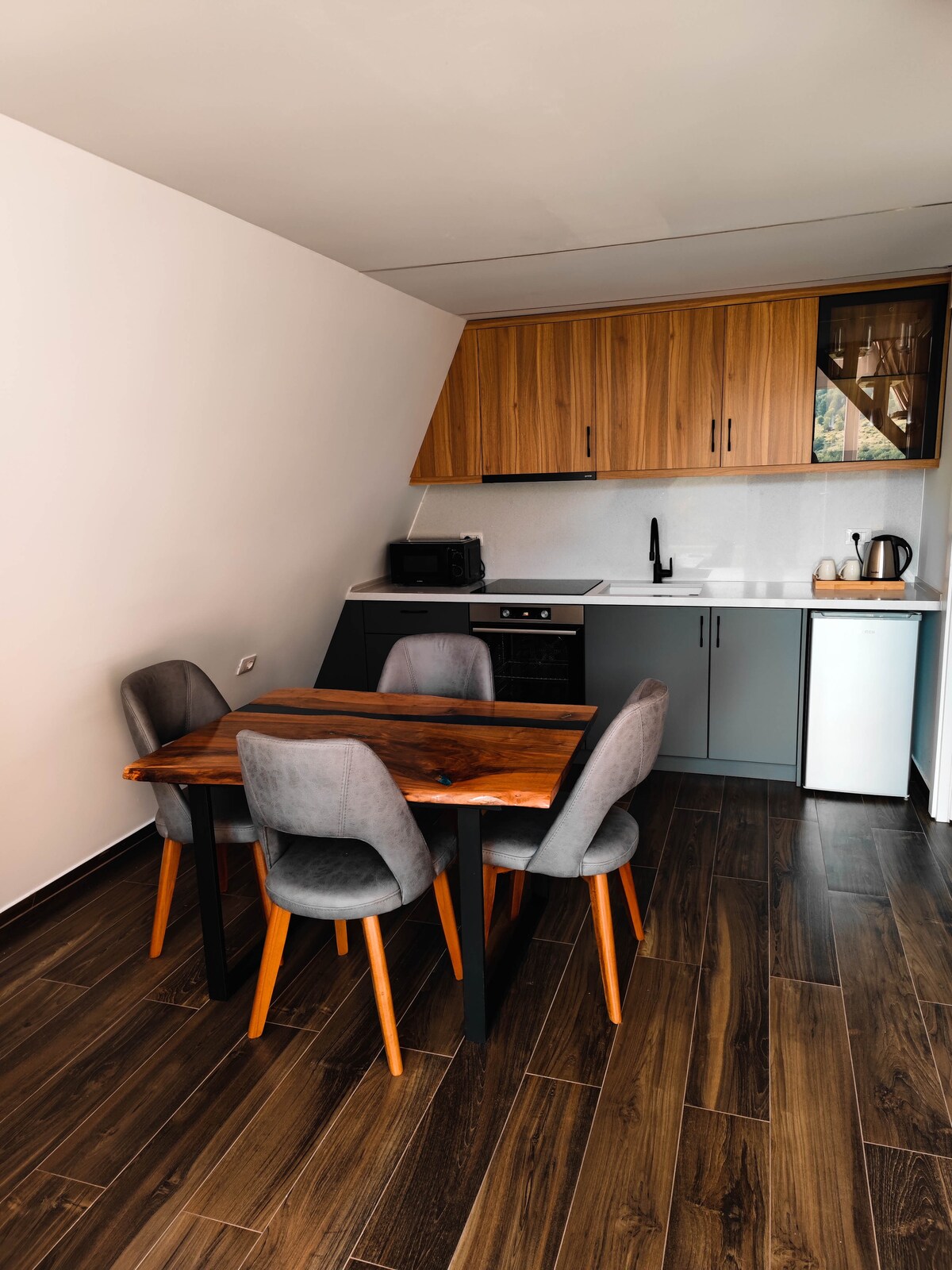 Maluwag ang apartment na nagpapakita ng bukas na kusina ng plano. Ang apartment ay mahusay na dinisenyo na may parehong modernong at clasicc architecture . Ang apartment ay may magandang kadahilanan at matutuwa ang sinumang bisita. Ito ay malinis,moderno at maliwanag at may lahat ng kailangan mo upang lumikha ng perpektong kapaligiran para sa iyong paglagi sa Shkodër. Ang 32 inch smart 4k TV na may WIFI ay makakatulong sa iyo sa iyong entertainment. Ang coffee machine ay naroroon Ang lahat ng bedding ay high end at komportable sa 1large bedroom.