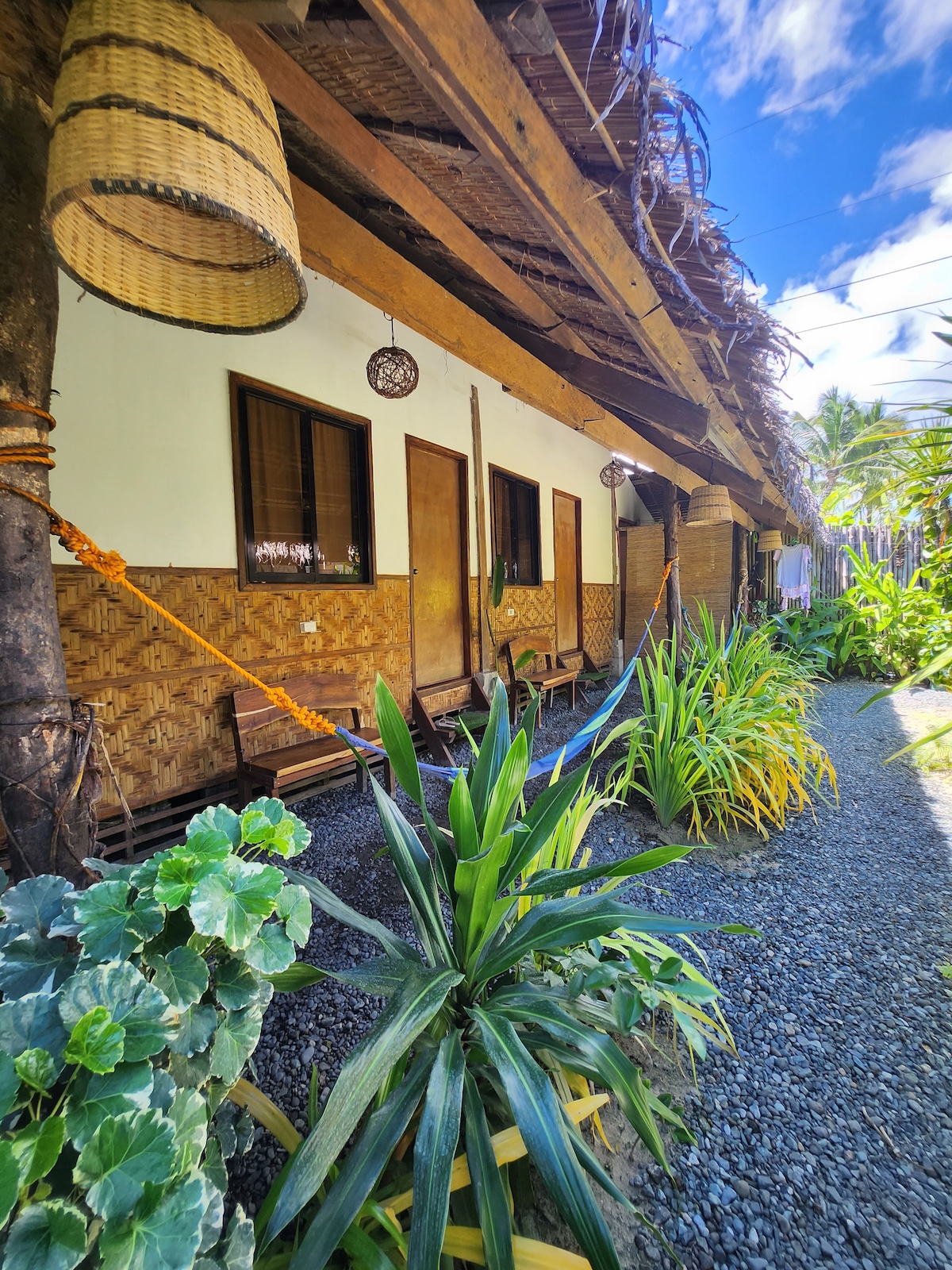 ★ 5-min drive from center • 10-min walk to beach ★ For couples who want a quiet place in the island. Can accommodate 2 up to 3 guests. You may cook for FREE! Amenities: ✓ Air-con room ✓ FREE Starlink Wi-Fi (up to 200 Mbps) ✓ Attached private toilet with hot shower ✓ 1 double bed, floor mattress for 3rd guest ✓ Towels, pillows, bedsheets ✓ Hammocks ✓ FREE use of kitchen ✓ FREE drinking water ✓ Board games! We offer: ✓ Breakfast ✓ Airport transfer ✓ Tour packages ✓ Van and motorbike rentals