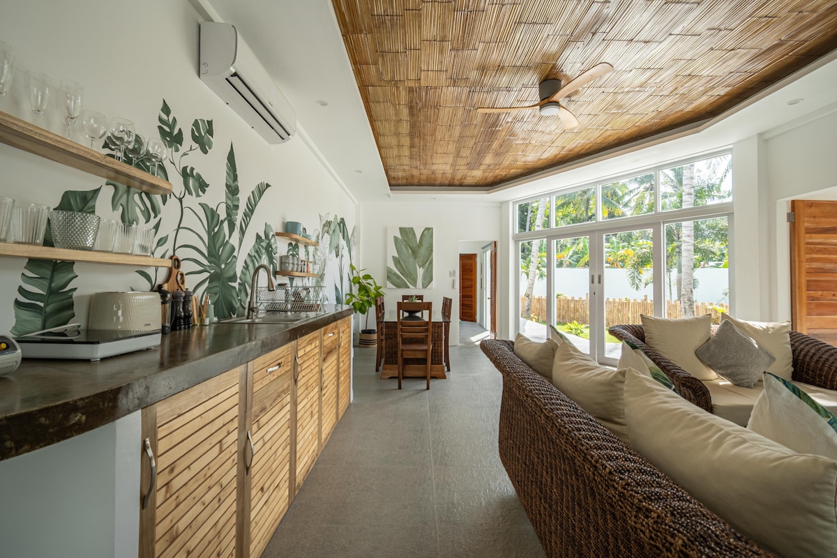 Isang kaakit‑akit na cottage na gawa sa kawayan na may 2 kuwarto at 1 banyo na may direktang access sa beach at pool. Isang bakasyunan ito sa tabing‑dagat kung saan may ilang magiliw na asong residente. Naglalakbay sila sa paligid at paminsan‑minsan ay bumabati, na nagdaragdag ng pakiramdam ng tahanan sa tuluyan. Kung hindi ka masaya kapag may mga aso sa paligid o mas gusto mo ang kapaligiran na walang alagang hayop, malamang na hindi ito angkop para sa iyo. 950 metro lang ang layo sa highway, katabi namin ang Liquid Dumaguete Resort. Maghanap sa Al Mare Dauin sa mga online na mapa.