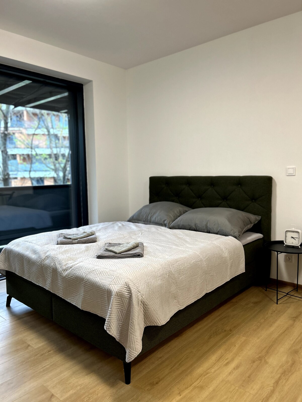 Nag - aalok ang bago mong naka - istilong apartment ng komportableng pamamalagi para sa hanggang 2 tao. Matatagpuan ito sa isang bagong ari - arian ilang minuto lamang sa loob ng downtown. Kumpleto ang kagamitan sa tuluyan (mga kasangkapan sa kusina, wi - fi, Antik Smart TV, atbp.) at handa na ito para sa iyong pamamalagi. May libreng paradahan sa nakatalagang underground space. Ang kaligtasan ng property at ang mga bisita ay ibinibigay ng pribadong kompanya ng seguridad.