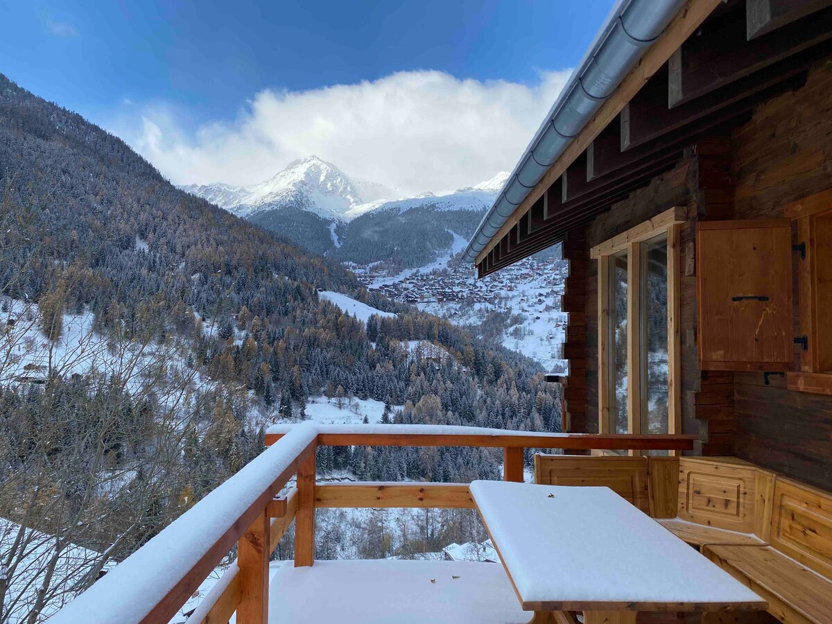 Tunay, rustic, maganda ang maliit at kaakit - akit na swiss chalet na may sala, kusinang kumpleto sa kagamitan na may refrigerator at oven. May 2 silid - tulugan: 1 silid - tulugan ("mga magulang")+1small silid - tulugan ("mga bata"). Isa ring napakagandang inayos na banyo (inayos noong 2020). Sa ika -2 palapag ay ang sala na may oven, na nakakonekta sa balkonahe + pribadong hardin na may pambihirang tanawin sa lumang nayon ng Ayer at sa magagandang bundok.! MAAARING I - book ang bed linen at mga tuwalya bukod pa rito (160x200/90x200)!kada tao 35CHF