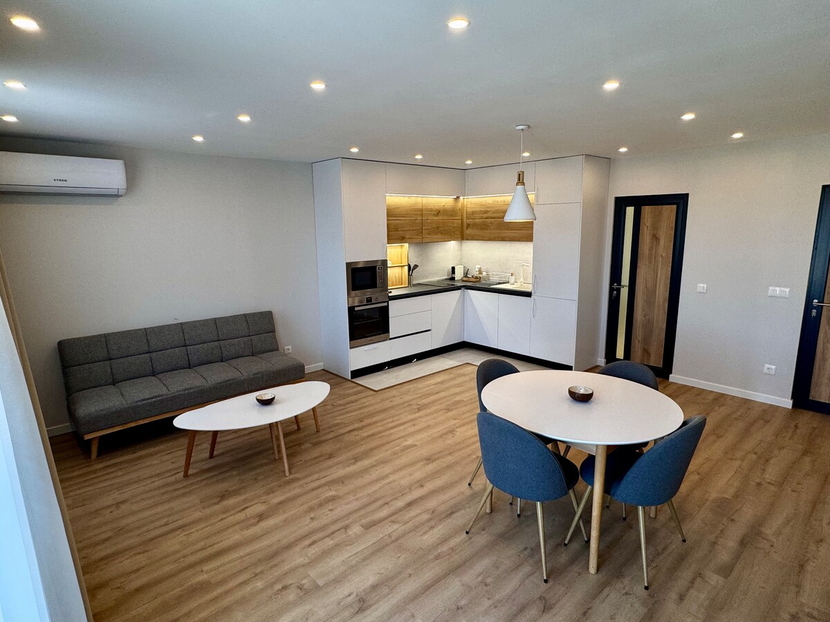 Naka - istilong at komportableng apartment na may maingat na piniling interior at pakiramdam ng espasyo. Nagtatampok ang apartment ng eleganteng banyo at hiwalay na toilet – isang praktikal na solusyon para sa kaginhawaan sa pang - araw - araw na pamumuhay. Maliwanag at gumagana ang tuluyan, na pinagsasama ang modernong pangitain at mga amenidad. Isang perpektong pagpipilian para sa mga taong nagkakahalaga ng kagandahan, detalye at kaginhawaan sa kanilang