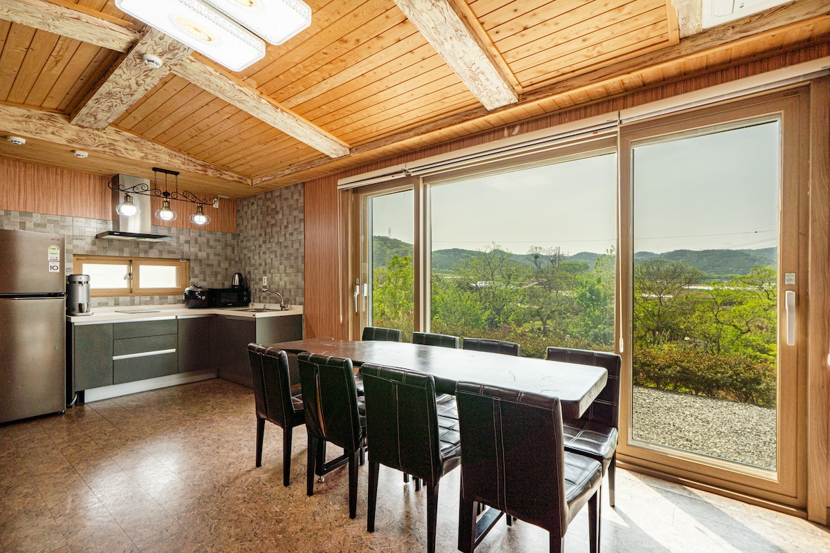 Sa paanan ng bundok na ito, may rafter ang huling bahay na mahigit 100 taon na. Isa itong annex na pinangalagaan nang hindi binabago, at isang grupo lang ang puwedeng mamalagi kada araw. Isang tahimik na kapitbahayan ito sa paanan ng bundok. Hanapin ang huling bahay sa paanan ng Bundok Jeongeup, at hindi mo pagsisisihan ang pagpili sa Chonmakase. May organic na lettuce na pinapalaki ng host, gawang‑kamay na kimchi, at sabaw na doenjang Sa mainit na pagbati, Magpailaw ng apoy gamit ang kahoy, saka ilagay sa takip ng kaldero ang baboy na tinapay, tinapay na baboy na may pampalasa, at mga bean sprout. Tapusin ang huling pag‑stir‑fry Puwede kayong umupo sa tabi ng apoy at, kapag maaliwalas ang panahon, makakita kayo ng maraming bituin sa kalangitan. Ang mga mahalagang tao na pumunta sa aming bahay Magkaroon ng komportable at nakakarelaks na araw.