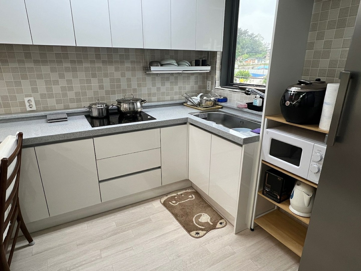 Magrelaks kasama ang buong pamilya sa tahimik na bakasyunang ito. Isa itong bagong inayos, maluwang, at komportableng independiyenteng tuluyan. Maganda ang nayon, at napapanatili nang maayos ang kalapit na daanan para sa paglalakad ng aso. Mainam ito para sa mga bata. Mayroon ding mga malapit na restawran, at wala pang 5 hanggang 8 minuto ang layo ng Naju Station Innovation City sakay ng kotse. ~^^Naju Gomtang Restaurant, White House, 10 minuto ang layo~^^ Innovation Lake Park 5 minuto ang layo, Golf course 5 minuto Kapag umalis ka sa lungsod, puwede kang mag - enjoy sa karanasan sa kanayunan ~~^^ # # Pinakamainam ang mga pagtitipon ng mga kaibigan at pagkakaisa ng pamilya ~~^^ Travel course Naju Forest Resources Arboretum - Naju Innovation Lake Park Observatory - Naju Gomtang - Naju Hyanggyo - isang chill round bilang isang coffee shop ~~^^ Ito ay isang kahanga - hangang kurso ~~^