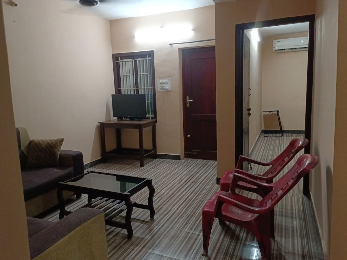 Isa itong bagong tuluyan at may hiwalay na balkonahe para sa kaaya - ayang tanawin at mga wardrobe na nakakabit din para maging komportable ang mga bisita. Hinahain ang mga bisita na may mga mararangyang higaan at naka - air condition. May hiwalay na sala, kusina, at microwave para sa pagluluto. 20 Mts drive papunta sa ISHA, 15 mts papunta sa templo ng Pateeswar. 500 M mula sa pangunahing kalsada ng vadavalli, 500 M sa veg/non veg hotel. 6 KM papuntang R.S PURAM. 500 M para sa mga istasyon ng gasolina. 4 KM papunta sa templo ng Marudamalai. 3 Km papunta sa unibersidad ng Bharadidhasan.