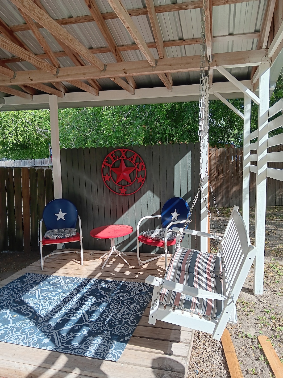 Maingat na idinisenyo para isama ang lahat ng gusto mo sa isang magandang maliit na espasyo. Masisiyahan ang mga bisita sa paradahan sa labas ng kalye ilang hakbang mula sa pribadong pasukan, pribadong beranda at bakuran na nasa tapat mismo ng parke ng komunidad na napapalibutan ng 1 mi. walking loop. Maginhawang matatagpuan nang wala pang isang milya mula sa HEB at ilan sa aming mga pinakamahusay na restaurant/shopping sa Lamar Park Center at ilang milya lamang ang layo mula sa mga makapigil - hiningang tanawin ng bay front at 20 minutong biyahe sa aming mainit na mabuhangin na dalampasigan!