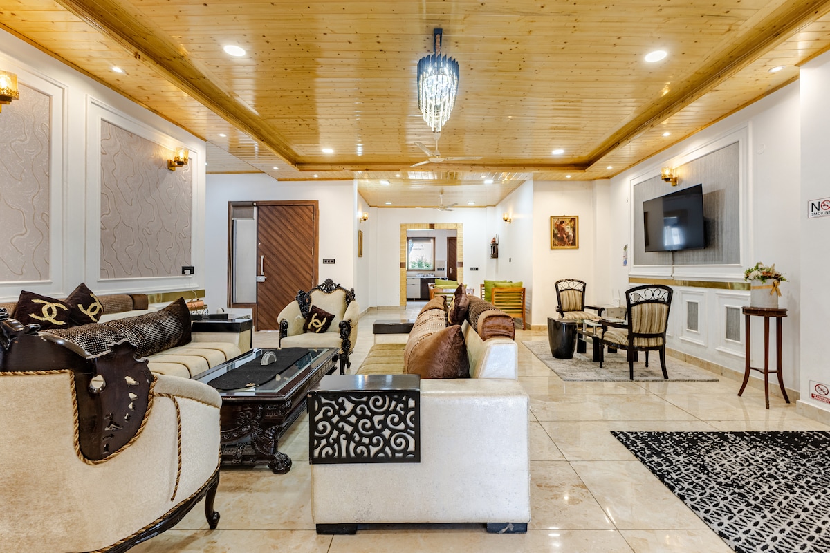 Luxe 4BHK Retreat • Terasa • Theatre at Pool Table