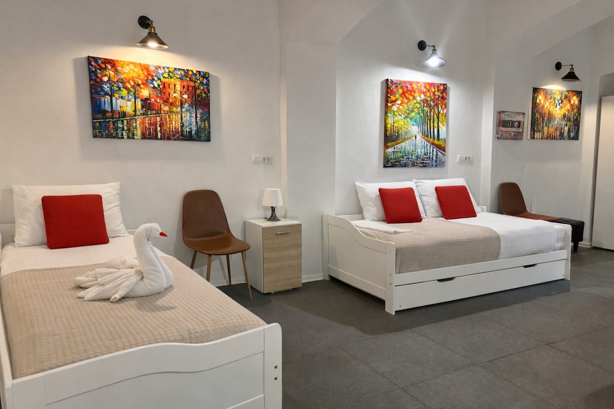 Magrelaks sa tahimik at eleganteng tuluyan na ito na may lahat ng kinakailangang kagamitan para sa functional na pamamalagi, na angkop para sa isa o dalawang tao at 2200 metro lang ang layo mula sa sentro ng lungsod. Ang mga istasyon ng tren at bus ay 2100m ang layo mula sa tirahan. Ang istasyon para sa transportasyon ng pasahero ng lunsod, na may mahusay na koneksyon sa lahat ng bahagi ng lungsod ay 100m lamang ang layo mula sa accommodation.