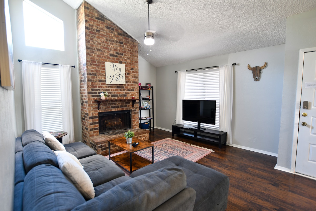 Nililinis nang propesyonal ayon sa matataas na pamantayan, kabilang ang mga hawakan ng pinto at switch ng ilaw. Manatili sa sarili mong “galeriya” na malapit lang sa mga restawran at tindahan sa Bishop Arts! Kamakailang na-update na may malalambot na kama, kusina na may gas range at granite counter, sala na may 55" smart TV, at modernong banyo na may walk-in shower. Gawa ng mga lokal na artist ang lahat ng sining at mabibili ang mga ito—mag‑uwi ng piraso ng Dallas!