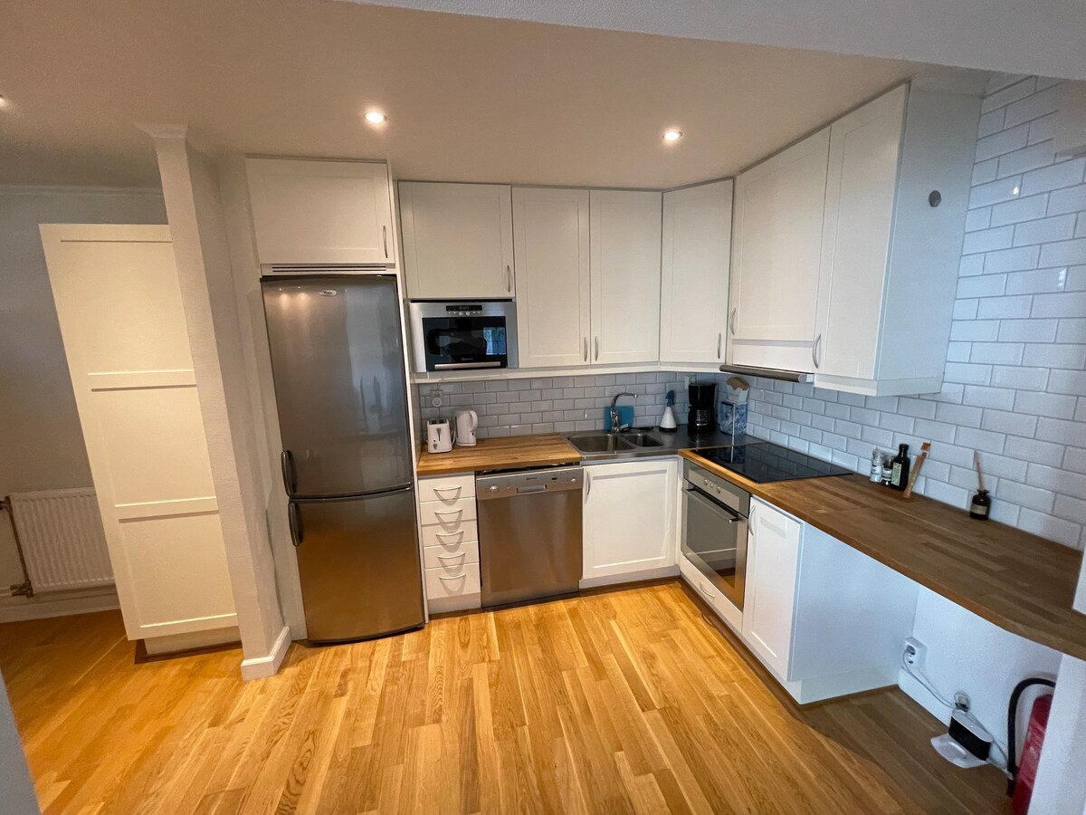 Ang apartment na may sukat na 60 sqm na nakabahagi sa 2 palapag ay nasa isang kamalig na may tanawin ng mga pastulan na 5 minutong lakad lamang mula sa Göta Älv. May kumpletong kusina at kasama ang mga kumot at tuwalya. May bus na 2 km ang layo na magdadala sa iyo sa Älvängen kung saan maaari kang sumakay sa commuter train papuntang Gothenburg sa loob ng 20 minuto. Sa Älvängen center ay mayroon ng lahat ng maaari mong isipin sa mga tindahan ng serbisyo ng pagkain, parmasya, tindahan ng sapatos, tindahan ng bulaklak, atbp. Sa munisipalidad ng Ale, may golf, mga hiking trail, mga daanan ng bisikleta, mga pagkakataon sa pagpapalabas, pangingisda, atbp.
