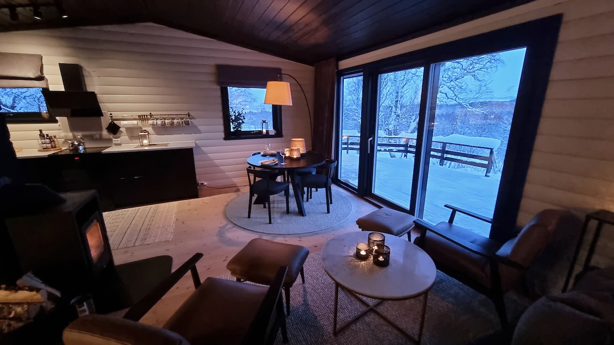 Magandang modernong cabin na may kahanga‑hangang tanawin mula sa sala. Napakagandang lokasyon para makita ang mga northern light mula sa mga bintana sa cabin o mula sa terrace, kung saan kinunan ang karamihan sa mga litrato sa listing. Madalas humihinto ang mga gabay sa northern lights sa labas ng cabin dahil magandang lugar ito para sa mga northern light. Makaranas ng kapayapaan at magandang katahimikan sa maluwang na cabin na ito ilang minuto lang ang layo mula sa sentro ng Tromsø at sa paliparan. Tangkilikin ang natatanging paraiso sa hilagang ilaw, mga bundok, kagubatan, mga lawa ng bundok at karagatan, lahat sa iyong pinto.