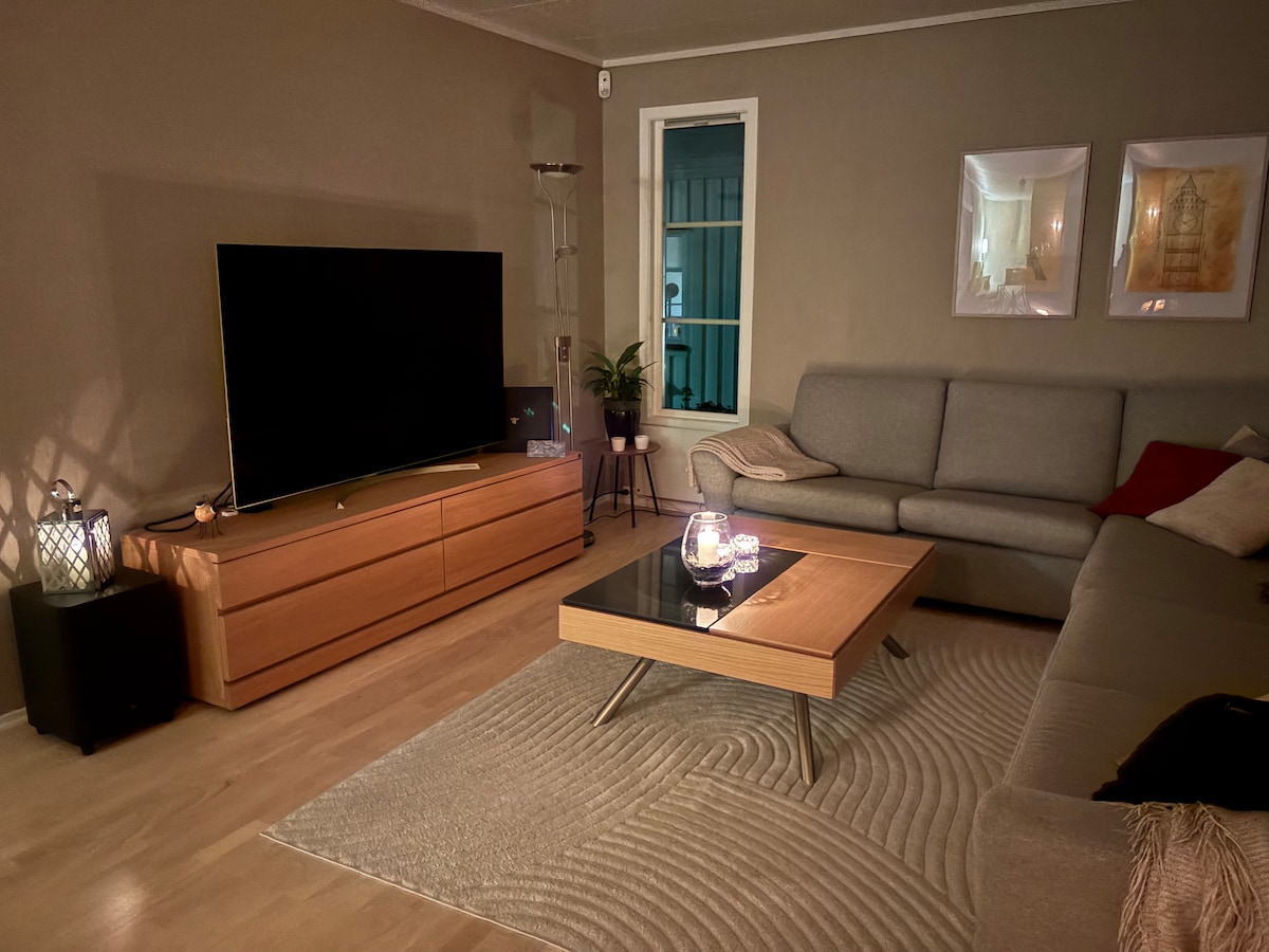 Maliwanag at magandang tuluyan na may 5 silid - tulugan na nasa gitna ng Porsgrunn na malapit sa unibersidad. Tollskogvegen 6 ang address. Maluwang na sala at kusina, pati na rin ang malaki at maliit na balkonahe para masiyahan sa mga mainit na araw at gabi. Nilagyan ang balkonahe ng lounge set, dining group, parasol, gas grill, at sun lounger. Kabuuang 5 silid - tulugan na may kabuuang 8 higaan, pati na rin ang sofa bed mula sa bolia na 150x200. Ang mga sukat ng higaan ay 90: 1 120: 2 150: 3 180: 2. May linen at tuwalya sa higaan. Kuwarto para sa maraming tao pero shower lang ito.