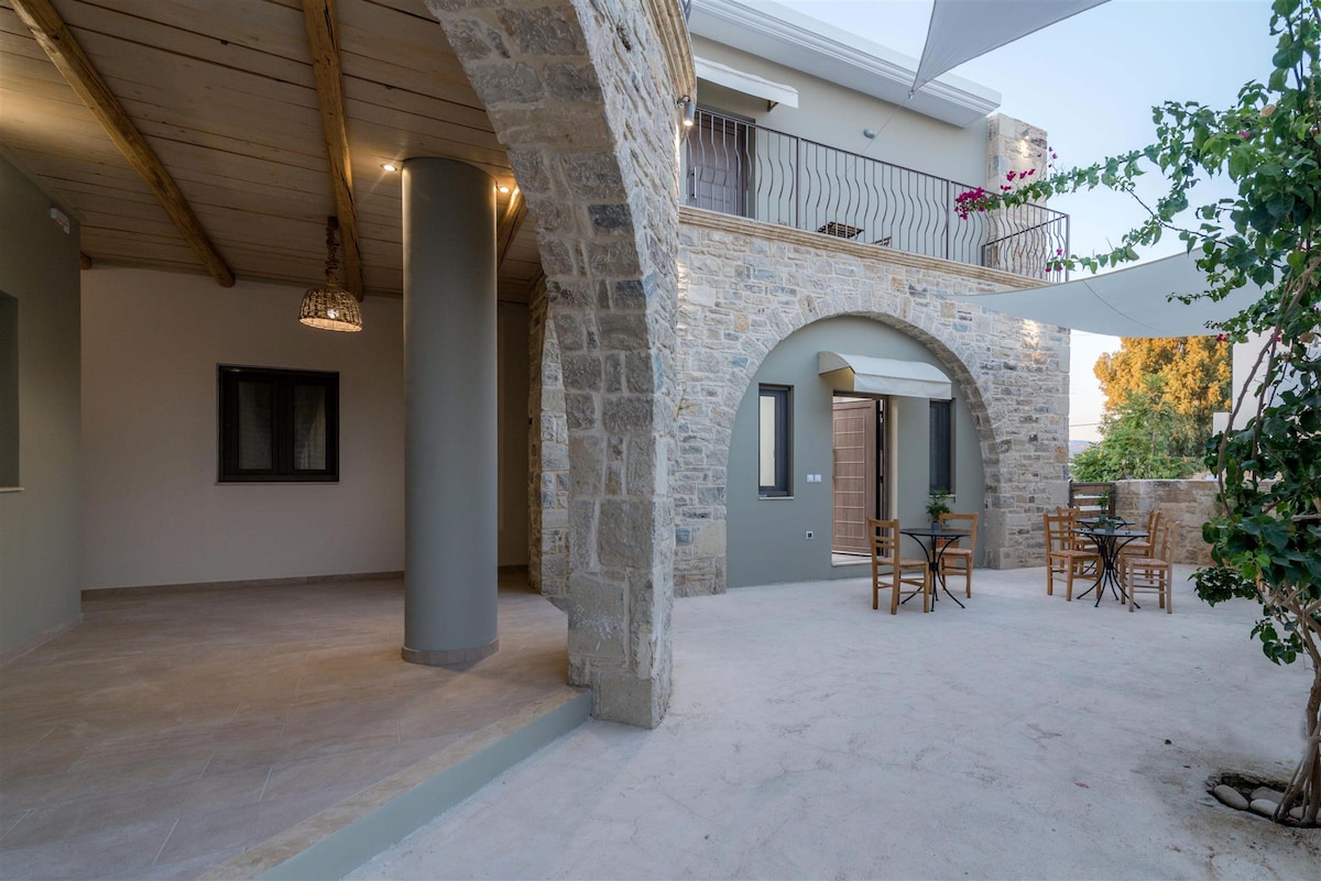 Tuklasin ang katahimikan sa gitna ng kaakit - akit na nayon ng Vori na may pamamalagi sa aming kaakit - akit na stonehouse. Matatagpuan ilang minuto lang ang layo sa pamamagitan ng kotse mula sa makintab na baybayin ng South Crete, nag - aalok ang kamakailang na - renovate na retreat na ito ng magandang bakasyunan para sa buong pamilya. Ang aming stonehouse ay isang kanlungan ng katahimikan. Isawsaw ang iyong sarili sa walang hanggang kagandahan ng tradisyonal na arkitekturang Cretan, bilang bahay, na binuo gamit ang masusing pagmamason ng bato, ay nagpapakita ng tunay na kagandahan