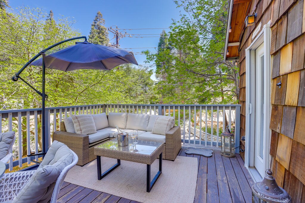 Isang payapa at pribadong cabin sa bundok na 5 minuto lang ang layo mula sa Lake Arrowhead at Village, kabilang ang kanilang lokal na Brewing Company, mga tindahan, supermarket, at mga botika. Mamalagi at magrelaks sa mga tahimik na tunog ng kalapit na sapa at magpakasawa sa magagandang tanawin ng kakahuyan, o bumisita sa Sky - Park sa Santa's Village para sa mga trail ng bisikleta, rock climbing, zip - linen, at marami pang iba! Kung nakakaramdam ka ng labis na pakikipagsapalaran, 15 at 40 minuto lang ang layo ng Lake Gregory at Big Bear Lake. Walang sinisingil na bayarin sa serbisyo sa mga bisita.
