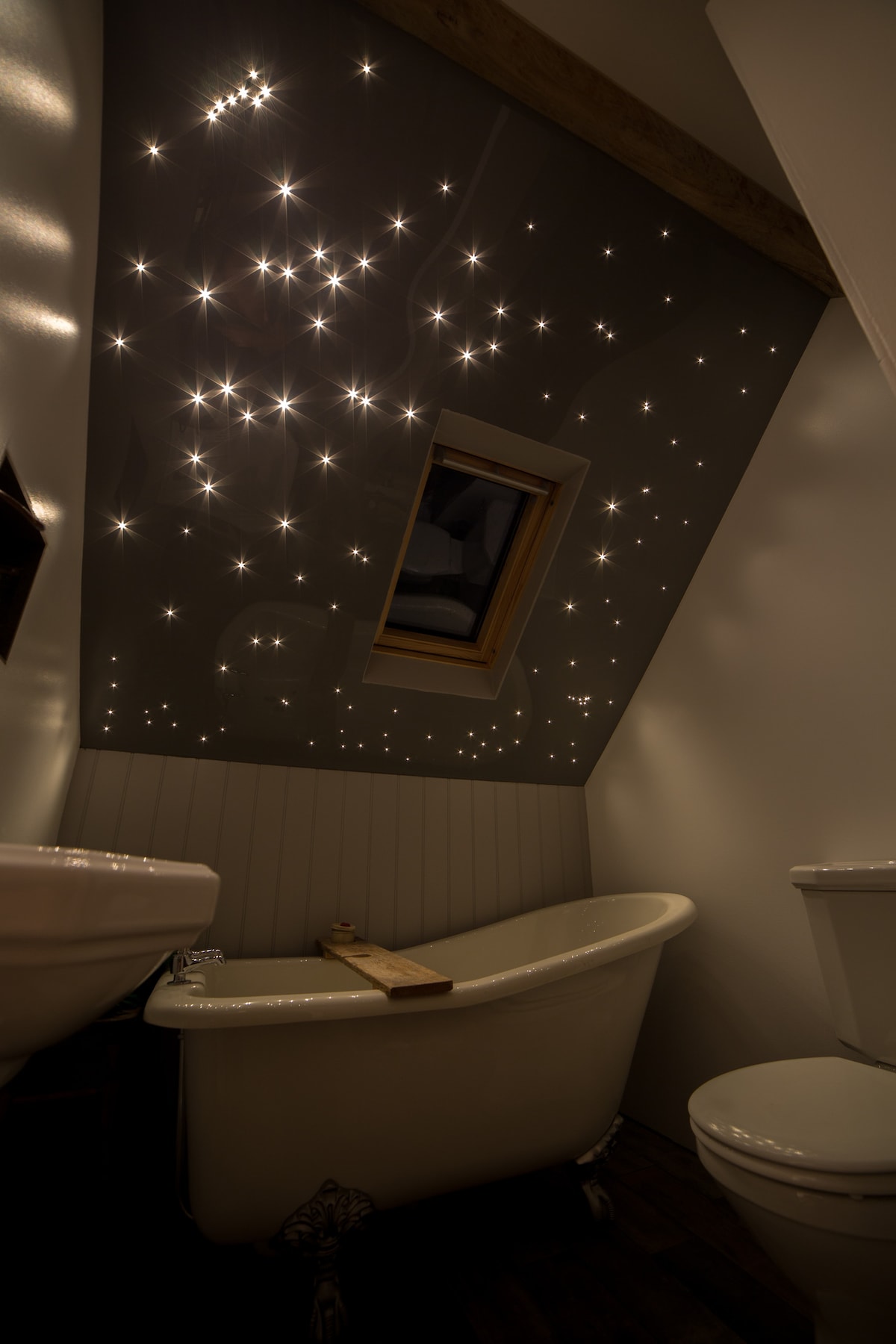 Lofty's - bespoke & fabulous! Skillfully hand crafted, delightfully cosy, with all the trappings of quirkiness & good design. Super-fast Wifi. Wood burner. Both bedrooms boast ensuites, each with a roll top bath & walk in shower; perfect for 2 couples. *If booked by just one couple, the 2nd bedroom will be closed Private patio. Outdoor dining. Covered hot tub shack with soft seating & firepit. 50 acres of private land Over 12 years & adults only