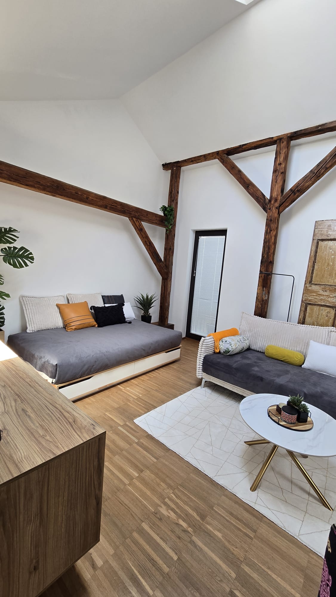 Das Studio LOFT ist unser Neuestes und hat einen beeindruckenden Ausblick. Der Raum ist mit seinen zahlreichen Doppelglas Dachfenstern lichtdurchflutet und mit viel Liebe zum Detail ausgestattet. Von modernem beton-cire Boden und Eichenholzausstattung. Luftig ausgestattet und eine angenehme Balance zwischen modernem MInimalismus und warmem Alpenstil.