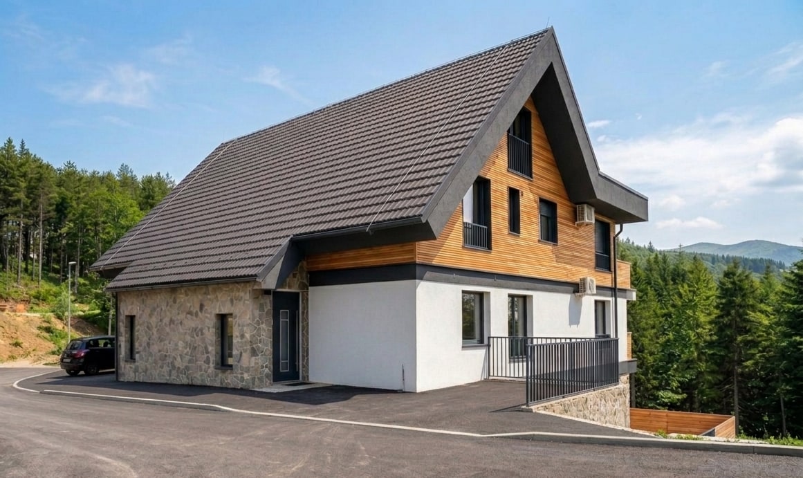 Isang kaakit - akit na dalawang palapag na chalet ng pamilya sa isang pambihirang lokasyon,( 1000m ang taas), na nag - aalok ng mga nakamamanghang tanawin. Nagtatampok ang komportableng retreat na ito ng malawak na sala, master bedroom, at banyong may shower sa ground floor. Kasama sa maliwanag at maaliwalas na attic ang dalawang magkakaugnay na silid - tulugan, isa pang banyo, at infrared sauna para sa tunay na pagrerelaks. Ipinagmamalaki nito ang isang mapagbigay na lugar sa labas na may kaaya - ayang picnic spot, BBQ, at mahusay na pinapanatili na mga hardin.