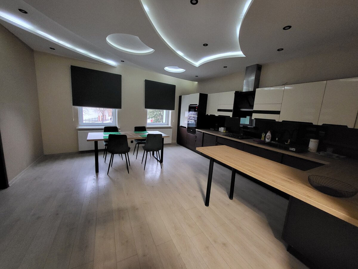 Matatagpuan ang kaakit - akit na apartment na 80 metro kuwadrado na ito sa tahimik na lugar sa sentro ng lungsod. Mayroon itong malalaki at maluluwang na kuwartong may magandang dekorasyon. Kumpleto ang kusina sa mga modernong kasangkapan tulad ng refrigerator, microwave, oven at dishwasher, na ginagawang madali ang pagluluto araw - araw. Ang silid - tulugan ay komportable at nilagyan ng komportableng higaan para sa isang tahimik na pagtulog sa gabi. Elegante ang banyo at may shower at mga modernong amenidad.