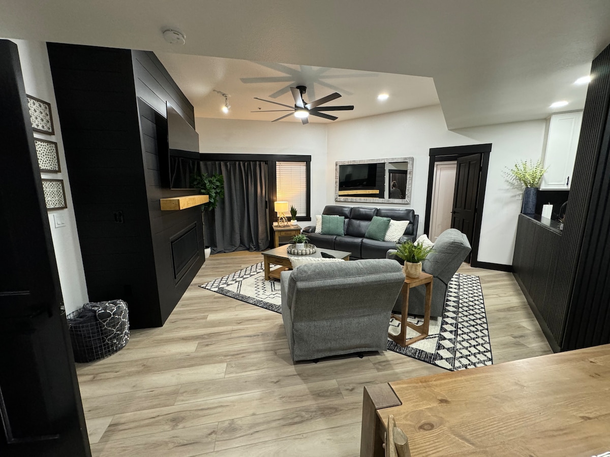 Kalimutan ang iyong mga alalahanin sa maluwag at marangyang apartment sa basement na malapit sa lahat. High end bedding, steam shower, 3 TV, high speed WiFi, storage at room galore. Winter sports gear rack at boot at glab dryer. Isang buong gourmet na kusina, washer at dryer at mainit na fireplace na may thermostat. Award winning na tanawin ng hardin at sakop na patyo upang makapagpahinga sa tagsibol, tag - init at taglagas. Pampamilyang ligtas na kapitbahayan. 4 na panahon ng karangyaan at alaala. Hindi mo gugustuhing umalis!