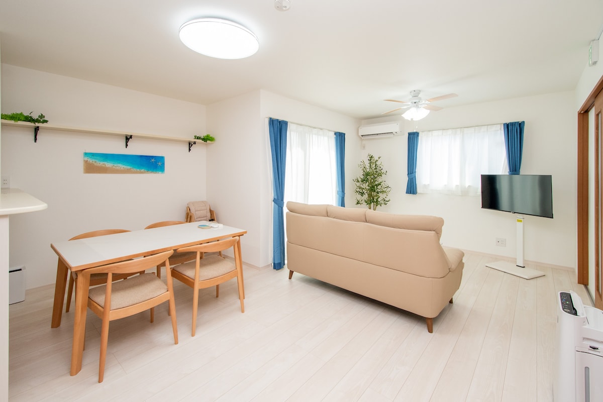 Matatagpuan ang property na ito sa Yomitan Village, na matatagpuan sa sikat at skyrocketed sa sentro ng Okinawa Prefecture. Maginhawa rin itong matatagpuan sa hilagang lugar kung saan matatagpuan ang Churaumi Aquarium, pati na rin ang katimugang lugar na may Kokusai Street. Aabutin nang humigit - kumulang 50 minuto mula sa paliparan at 1 minutong lakad papunta sa beach.Napakasarap ding maglakad‑lakad sa kalikasan! Mayroon ding supermarket at convenience store sa malapit, na talagang maginhawa para sa iyong pamamalagi. Ang bahay ay 3LDK (3 silid - tulugan 6 na higaan + sofa bed + dagdag na futon) na bahay [nakalaan]. Walang pinaghahatiang lugar sa iba pang bisita.Huwag mag - atubiling gamitin ito nang mag - isa. Puwede ring gamitin nang libre ang washing machine at dryer machine.Maginhawa rin ito para sa mas matatagal na pamamalagi at malayuang trabaho. May shower sa labas ng pasukan, kaya alisin ang anumang buhangin o putik kapag umalis ka sa beach. May mga pasyalan sa malapit tulad ng Nirai Beach at Cape Zanpa, Watsuichi Beach, Sweets Goten, Murasaki Murasaki, para ma - enjoy mo ang Okinawa