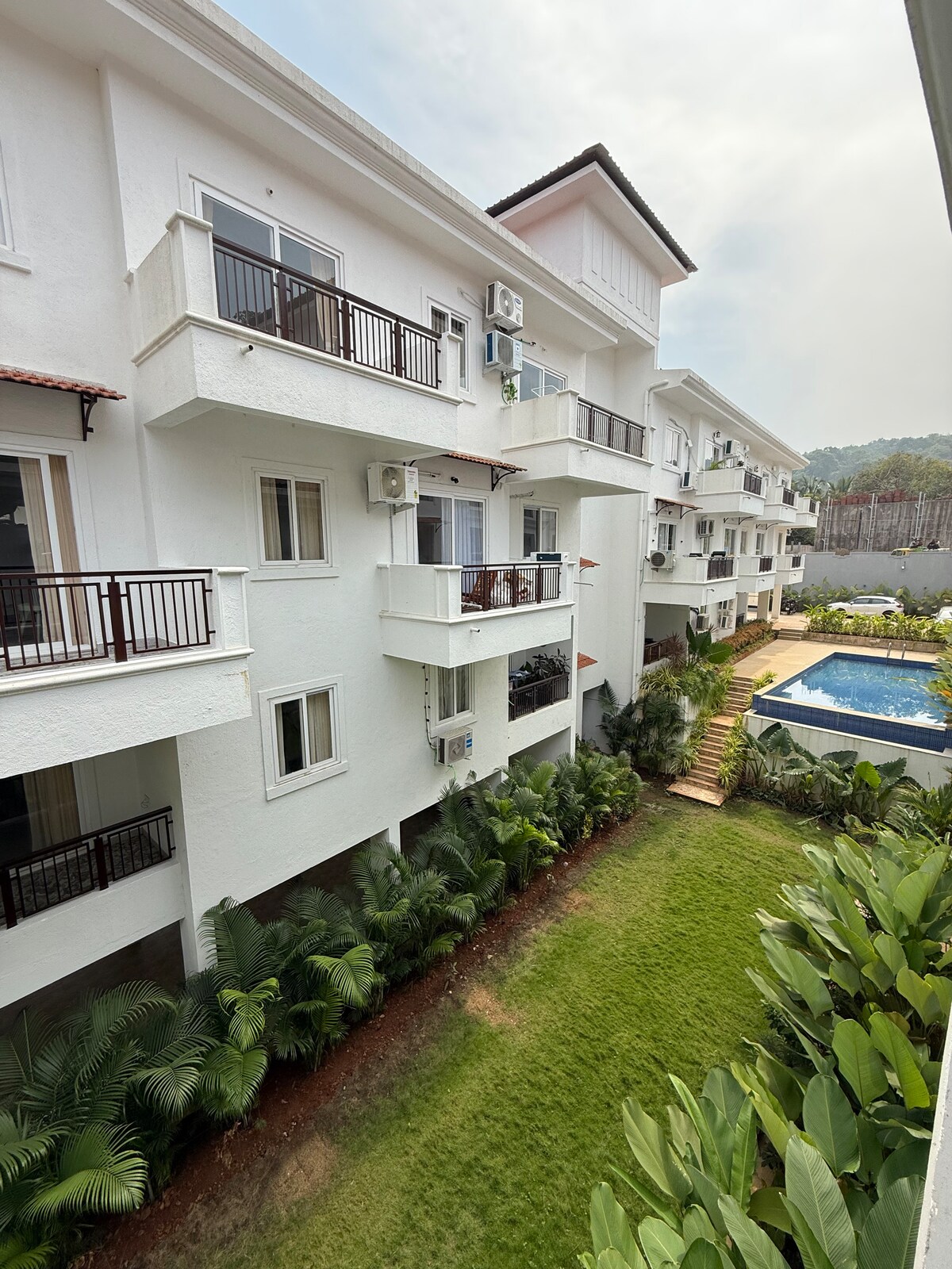 ☆ Pribadong pool mismo sa iyong balkonahe ☆ Matatagpuan sa tabi ng lahat ng pangunahing beach sa North Goa ☆ Calangute Beach 6 Min 🛵 ☆ Candolim Beach 13 Min ☆ Vagator Beach 25 Min ☆ Anjuna Beach 25 Min ⇒ Madaling I - access ang parehong mga Paliparan ⇒ Mapayapang Kapitbahayan na⇒ Perpekto para sa WFH. May kasamang Desk at Fiber WIFI ⇒ Sapat na paradahan para sa mga kotse at bisikleta Matutulog ng⇒ 4 na May Sapat na Gulang ⇒ High - end na muwebles, French silverware, 1 king size bed at 1 queen size sofa bed ⇒ 55" Smart TV, PlayStation at Marshall Speakers