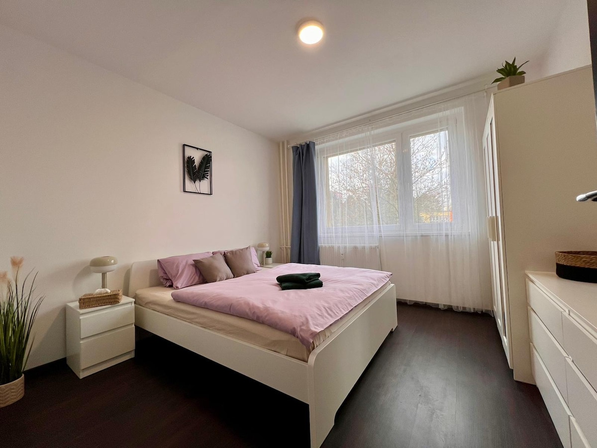 1+1 na may double bed, sofa bed,TV, LIBRENG internet,kusinang kumpleto sa kagamitan, refrigerator, takure at microwave oven. Banyo na may shower, toilet , lababo. Ang espasyo sa likod ng bahay ay isang maliit na palaruan ng mga bata, malapit sa SUPERMARKET, restaurant , swimming pool. Libreng paradahan sa harap ng bahay at sa paligid ng bahay. Malapit ang FK at HC Baník Sokolov sports stadium Iba pang bagay na dapat banggitin Sa apartment ay makikita mo ang isang maliit na minibar kung kinakailangan, aayusin namin ang pagbili ng sariwang pagkain para sa iyong pamamalagi.